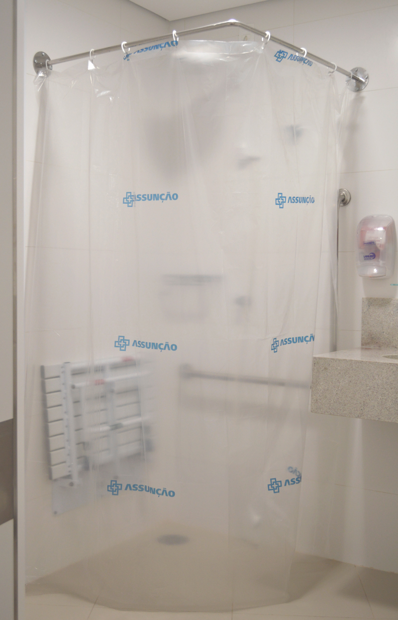 Essa cortina veio para inovar os banheiros dos hospitais. Substitui a porta do box do banheiro tradicional, eliminando assim os trilhos para melhor higienização;